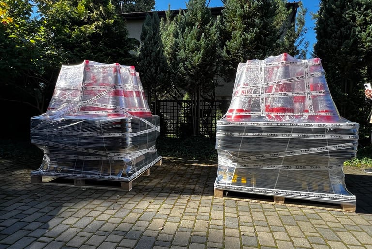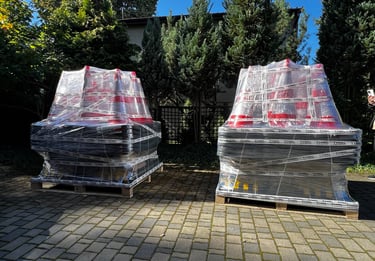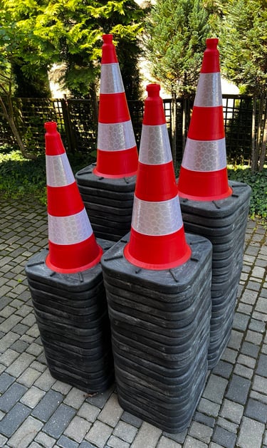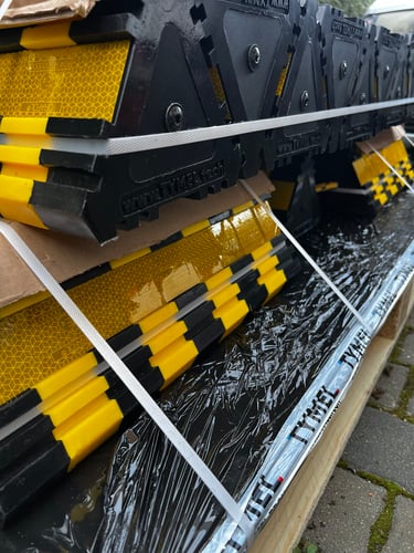 Today, a shipment of essential airport apron equipment departed for our client. The delivery includes aircraft wheel chocks manufactured in-house and reflective safety cones.