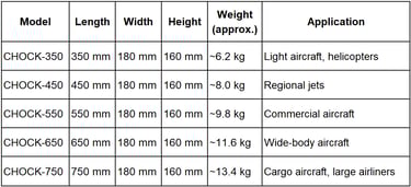 Our chocks provide secure and reliable immobilization for aircraft of all types and sizes. Suitable for use in civil and military aviation, helipads, and maintenance operations.